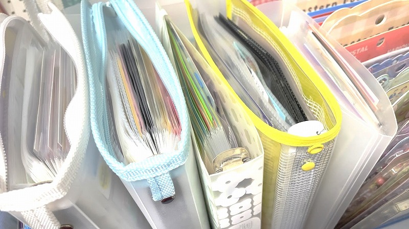 今までプラケースの引き出しの中を仕切ってジップロックやらに